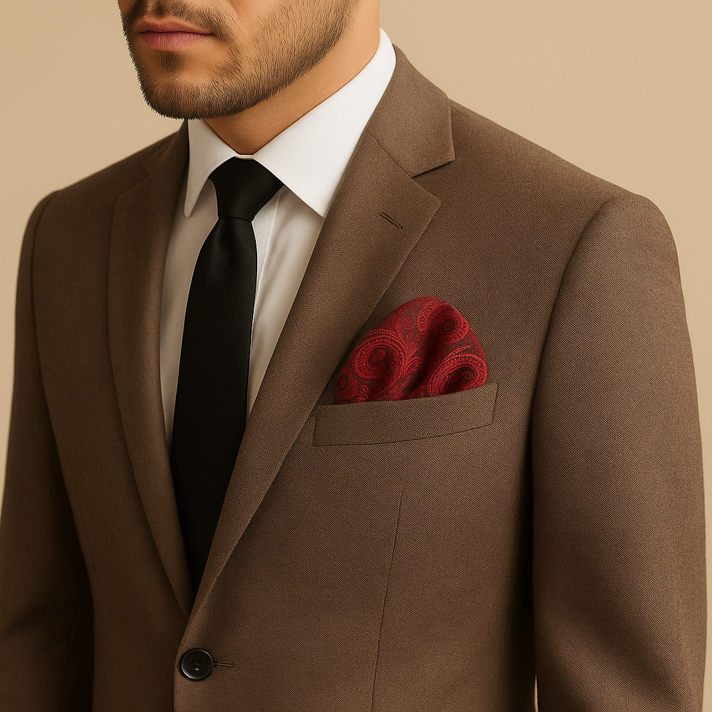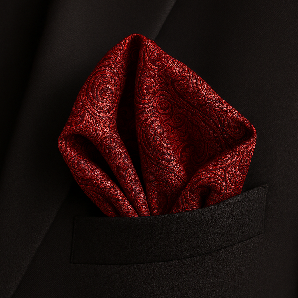 Den djupa röda tonen ger en kraftfull men sofistikerad känsla – perfekt för att lyfta en mörk kostym eller smoking med en touch av elegans.