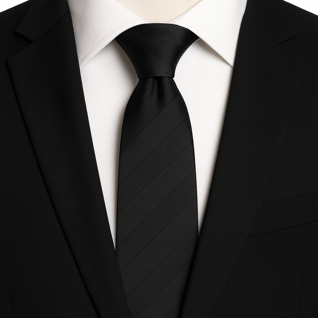 Denna svarta slips med subtila ränder kombinerar elegans och modern minimalism. Tillverkad av slitstarkt tyg med lätt glans som ger en sofistikerad look – perfekt för både vardag och fest.